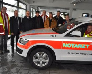 Mit Kameraden des DRK und Vertretern der Kirchen bei der Indienststellung eines neuen Notarztwagens des DRK in Freudenstadt.