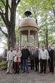 Mit OB Dr. Wolfgang G. Müller, Stadträten und Logenbrüdern vor dem erneuerten Denkmal für Wilhelm Schubert.