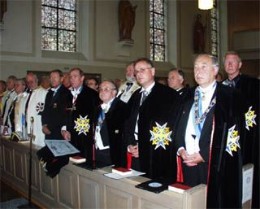 Kirchgang mit den Ordensbrüdern des CBdSE - Orden vom Heiligen Geist.