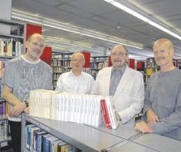 Übergabe neuer Bücher an die Bibliothek der Hochschule Kehl: Bibliotheksleiter Thorsten Hass, Ralf Bernd Herden, Präsident Klaus Kaufmann und Redakteur Martin Ruch vom Historischen Verein für Mittelbaden.